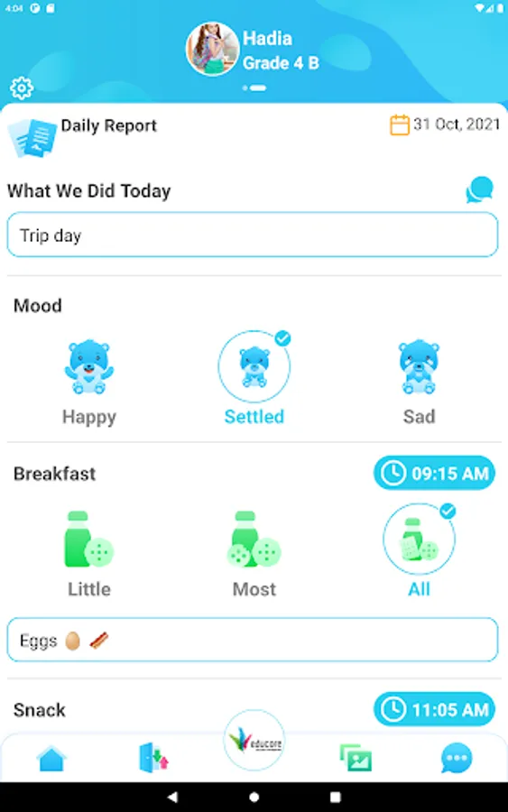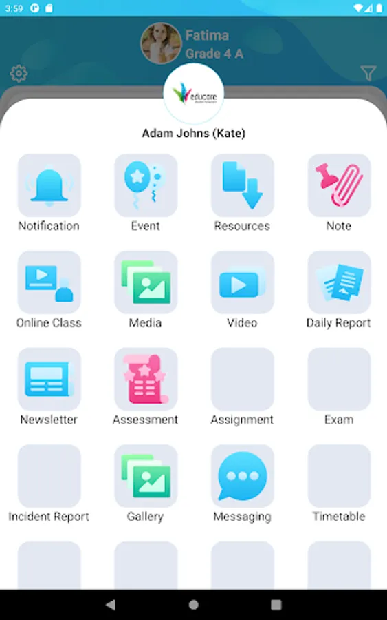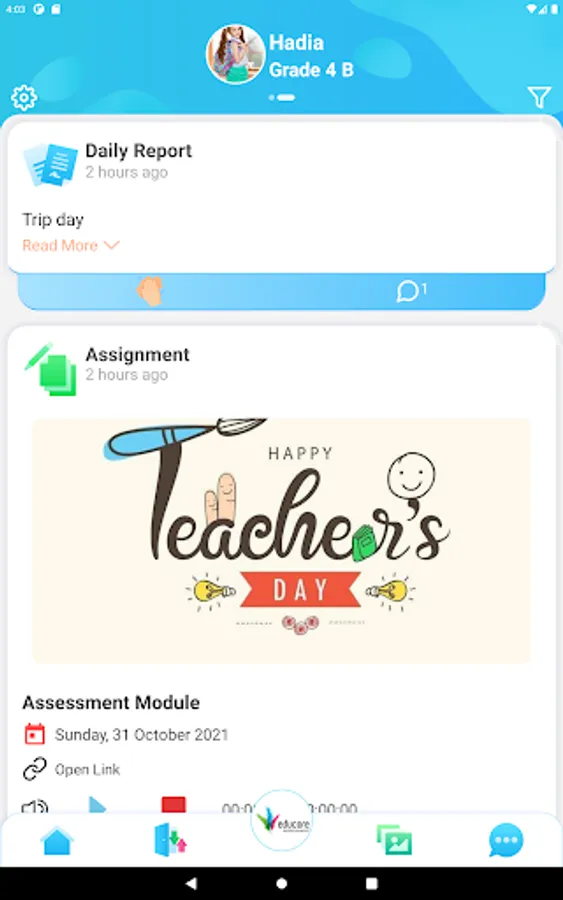 Once events are recorded from children classed, parents will instantly receive it on their app.