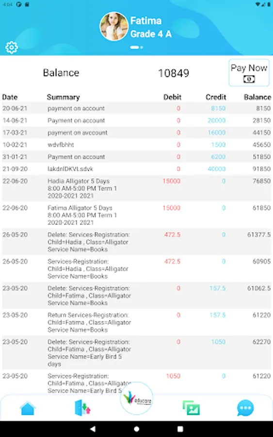 Parents can also communicate by internal mail with administration and keep track of their statement of account