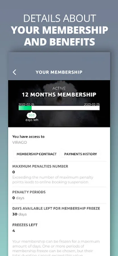 Details about your account - you can keep track of your membership, see how many days you have left, and its benefits