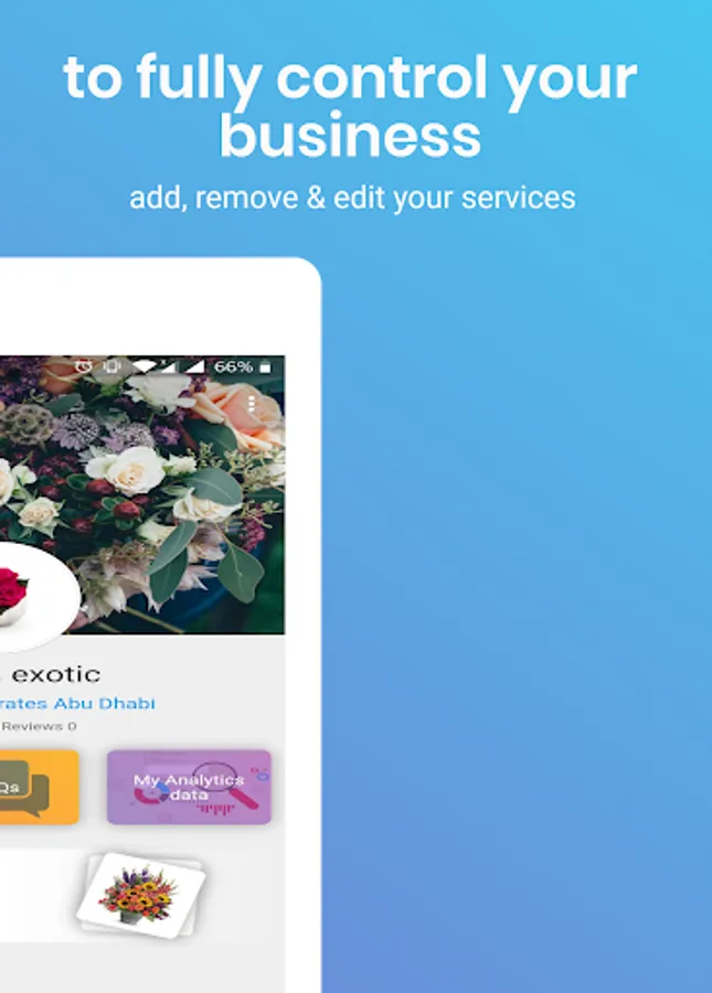With Wurd Business for business owners, you can manage your storefront at ease. You can track, follow up on your orders and add your services you offer on the go. Wurd Business enables you to manage the information and photos of your profile, and get in touch with customers from your tablet or phone.
