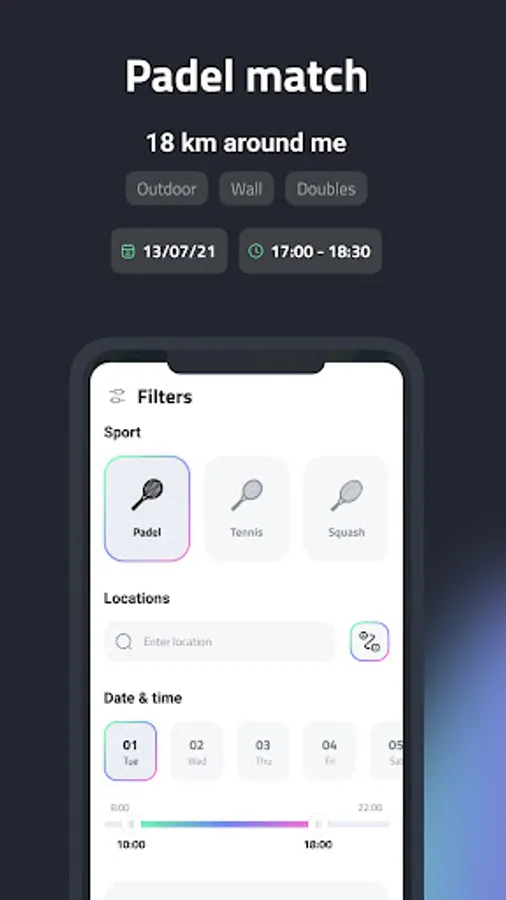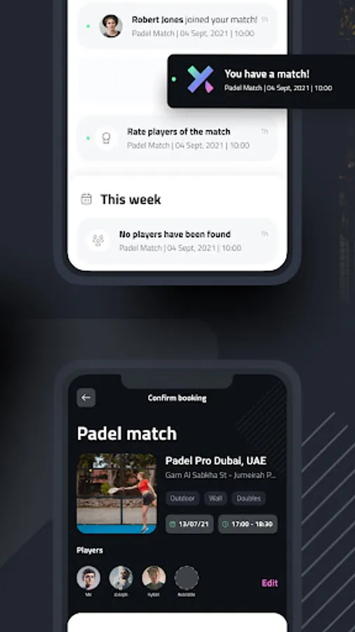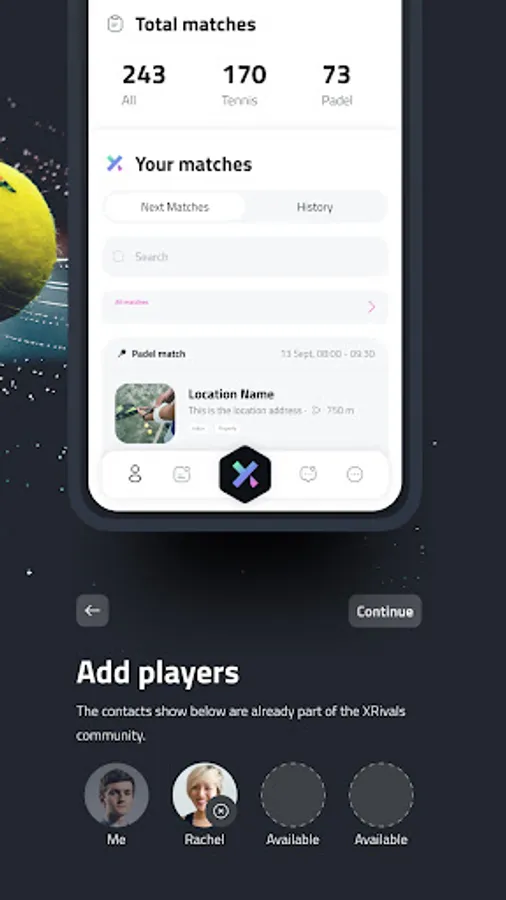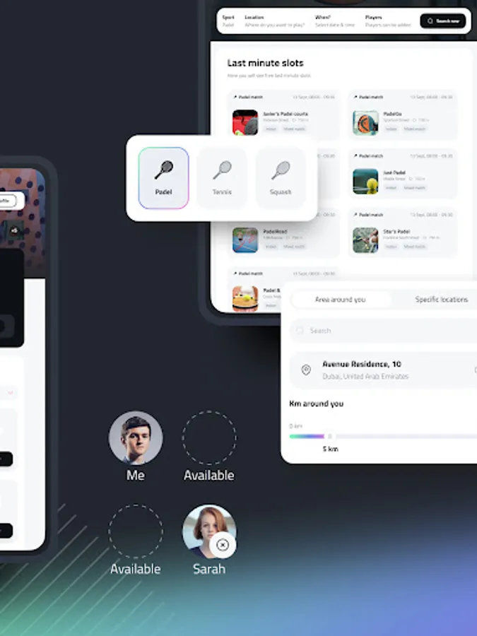 Venues near you: XRIVALS already provides access to venues across Dubai for Padel Tennis, Badminton, or Tennis.