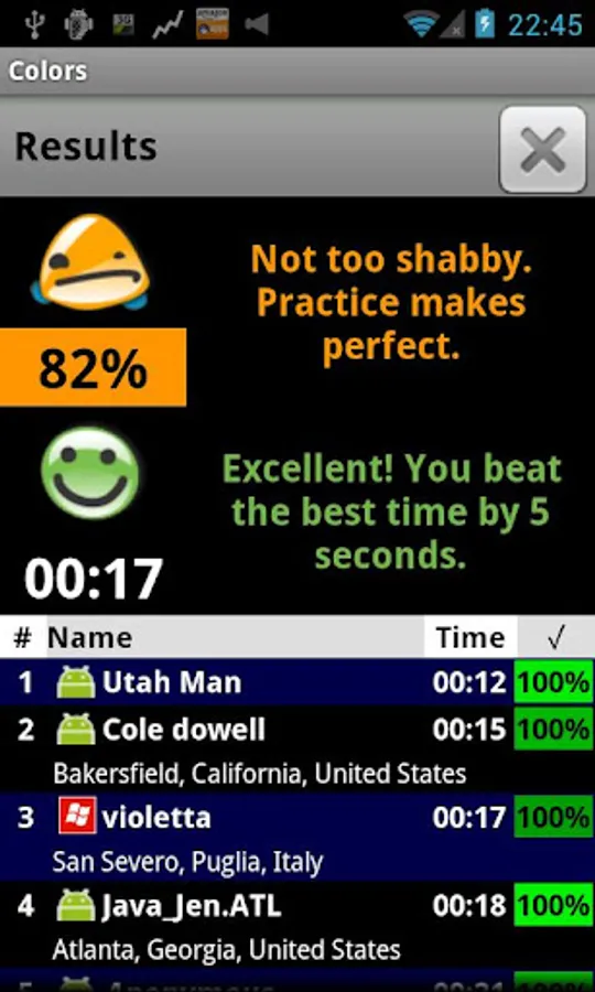* Try to beat your own time or compete versus a ghost replay of users' quiz sessions from all over the world