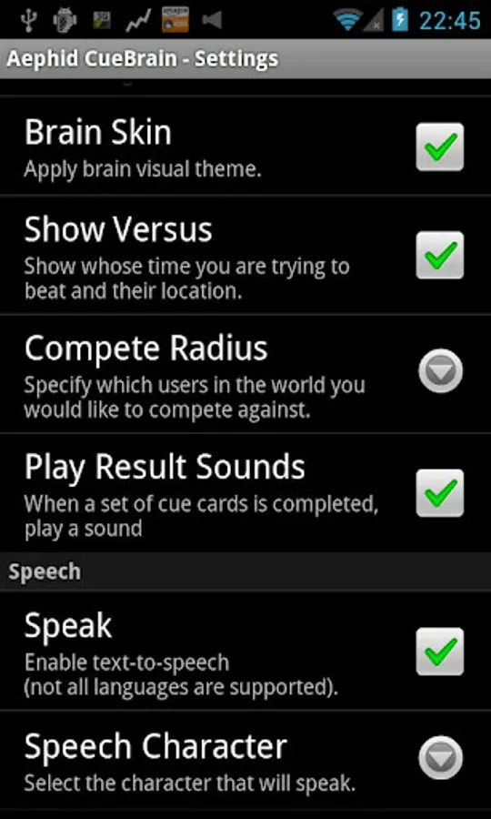 * Speech (the speech engine is not part of CueBrain; get more languages and higher quality by downloading 3rd party speech engines)