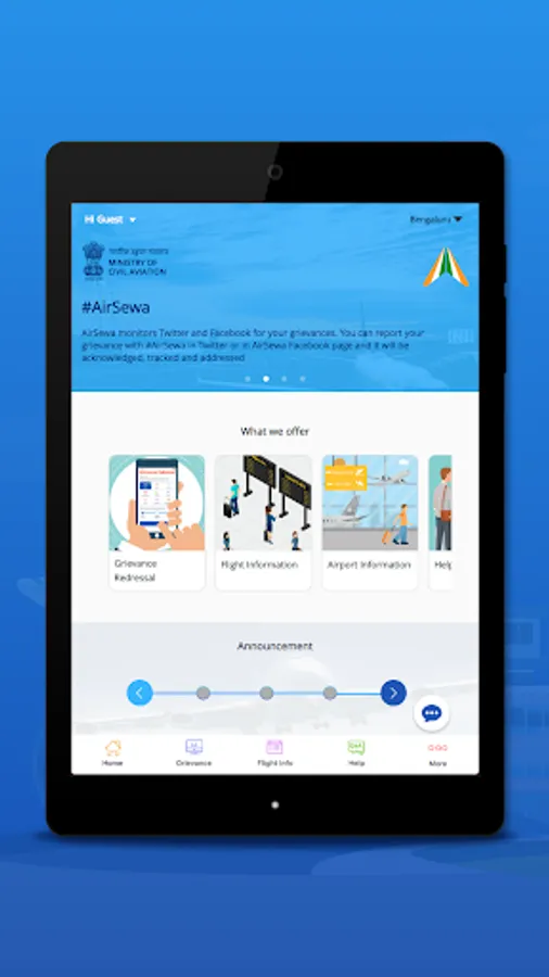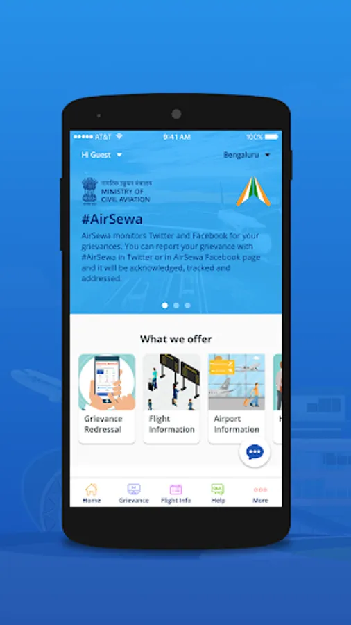 AirSewa is an initiative by the Ministry of Civil Aviation, Government of India. It provides a common platform for air travelers to submit air travel related grievances and seek information about flight or airport operation in India.