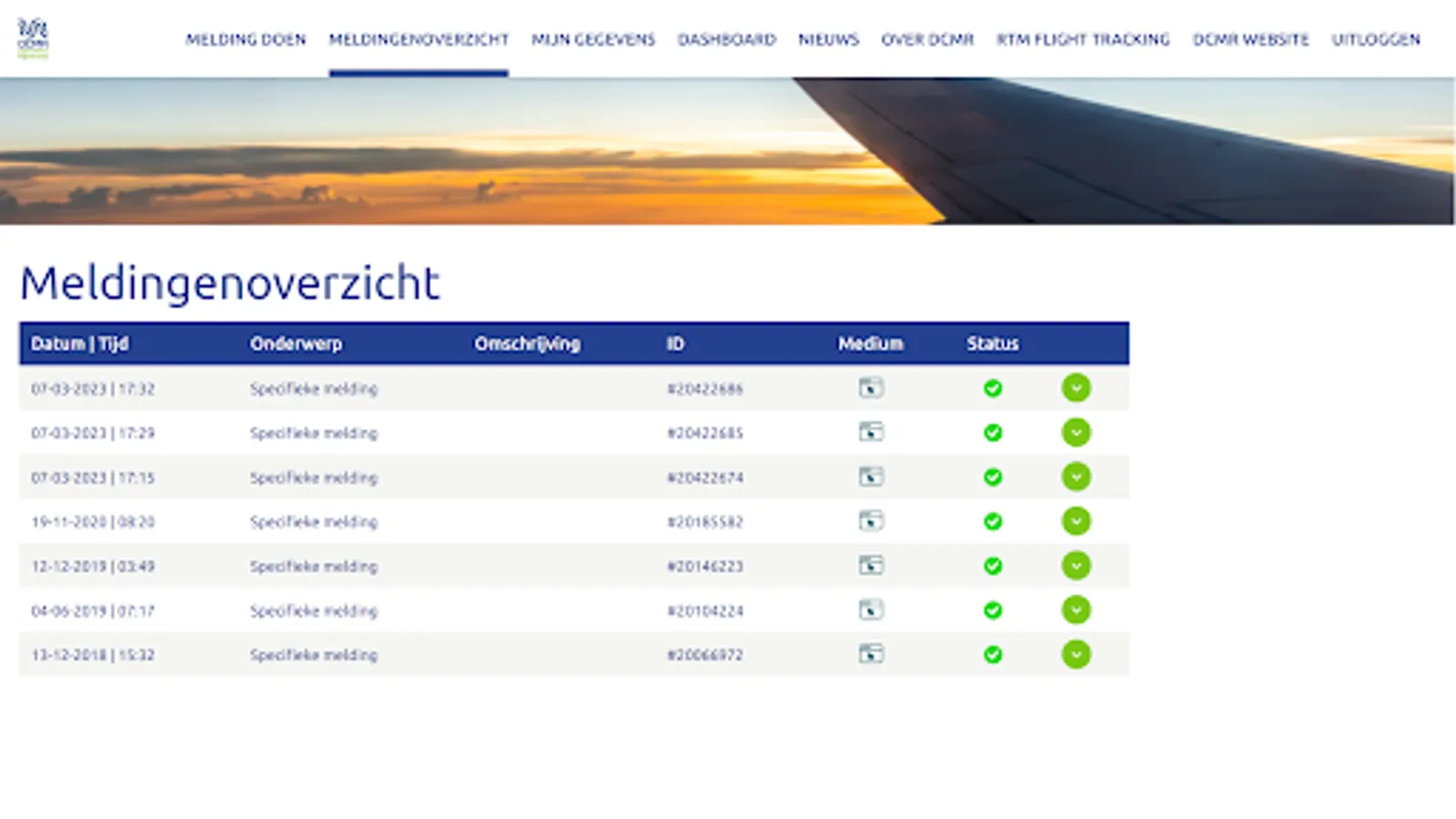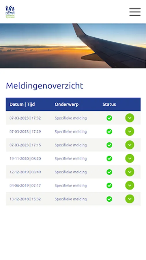 Submit aviation reports to DCMR Environmental Protection Agency Rijnmond