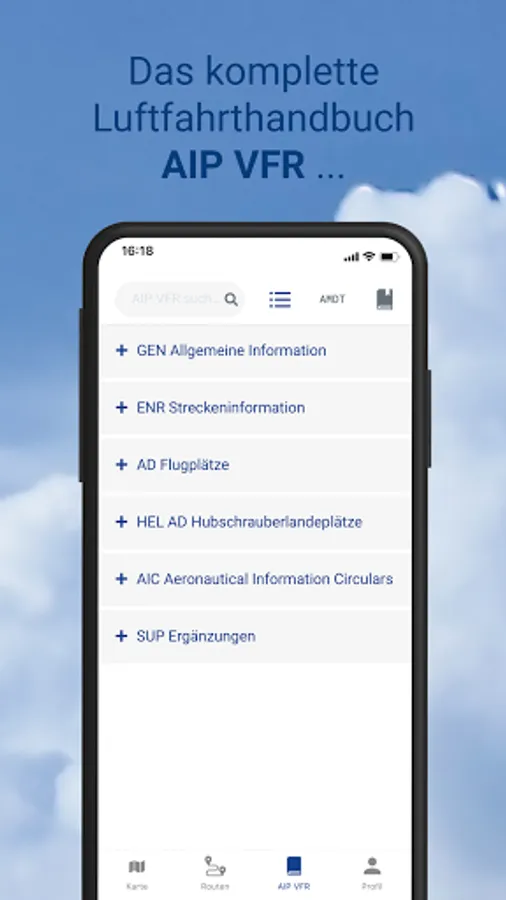 The complete aeronautical handbook Germany for visual flight. In addition to the visual flight and aerodrome charts for aerodromes & heliports (AD), all other parts are also included: general information (GEN), en-route information (ENR) and time-limited aeronautical information (AIC and SUP).