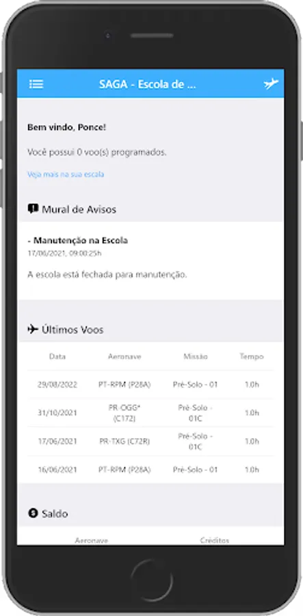 Application with ideal features for mobile phones focused on users (students, flight instructors, administrative) of the SAGA System.