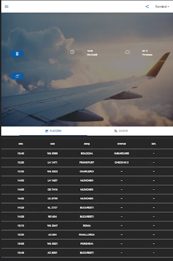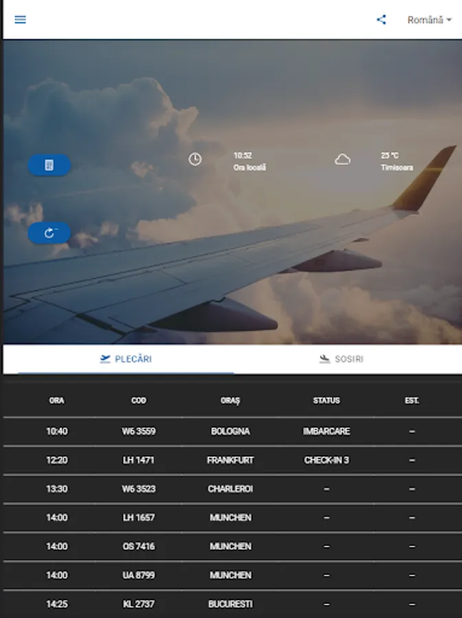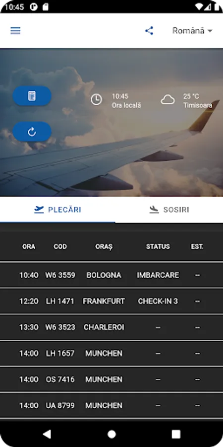 The Aerotim application offers travelers the opportunity to view in real time useful information about flights, flight schedule and destinations offered by Timisoara - Traian Vuia International Airport. Our passengers who use the services offered by Timișoara - Traian Vuia International Airport have immediate access to useful information related to: destinations, tickets and reservations, parking and access to and from the airport.
