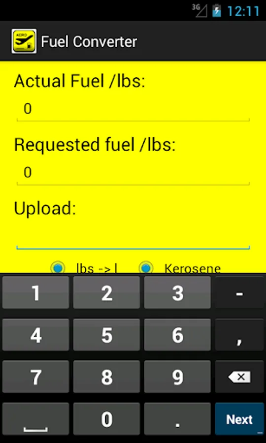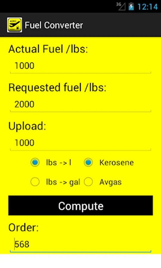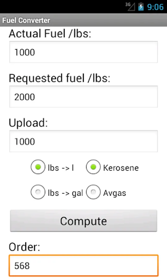 Fuel Converter will help you to determine the required amount of kerosene or avgas (100LL in US), to order. You enter the amount of fuel remaining in the tanks and the required block fuel and get your required upload.