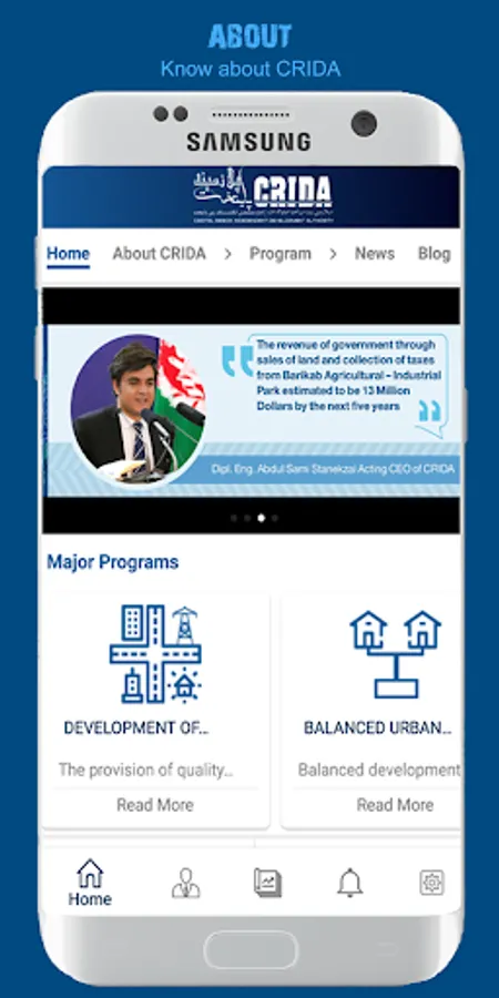 CRIDA is an independent budgetary unit and government profitable entity within the organizational structure of the Islamic Republic of Afghanistan. CRIDA, not only develops Kabul New City project but also pave the ways for development of Capital Region with broader vision.