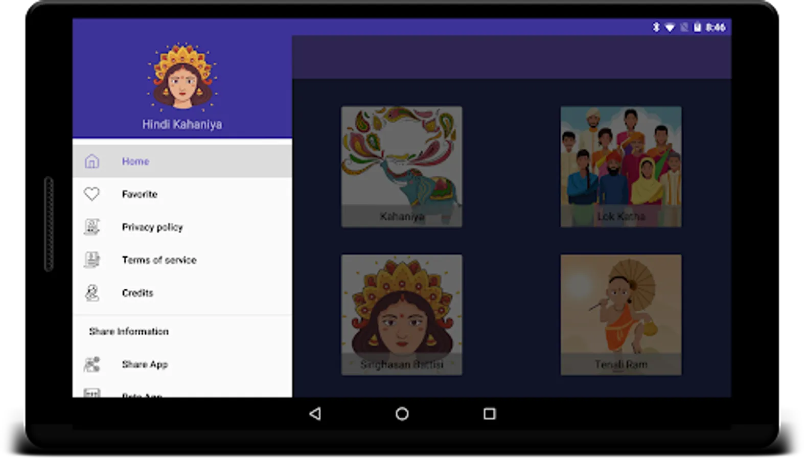 This application consists of Hindi stories which are taught in school in houses and else where, we have kept in mind the following points to make it simpler for the user to interact.