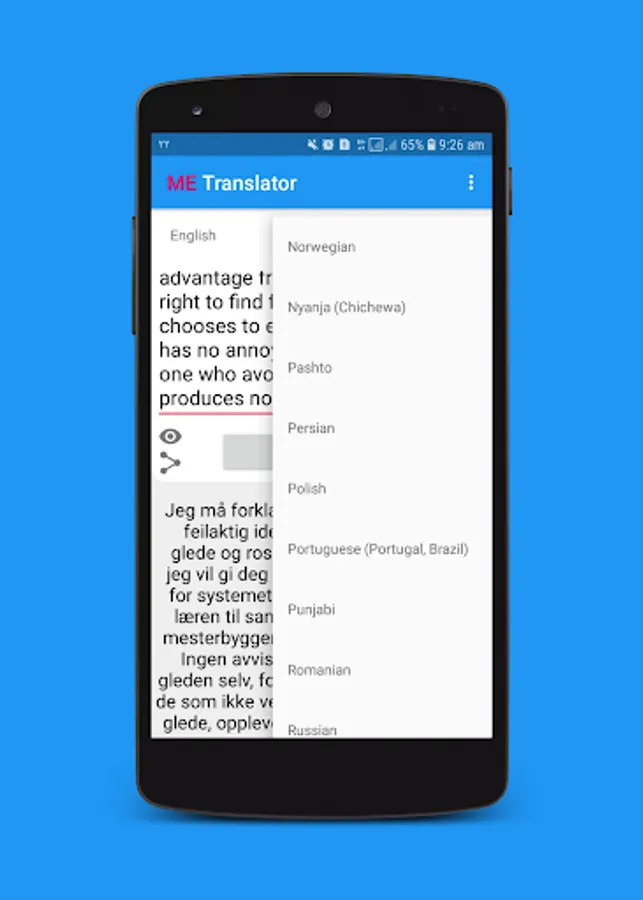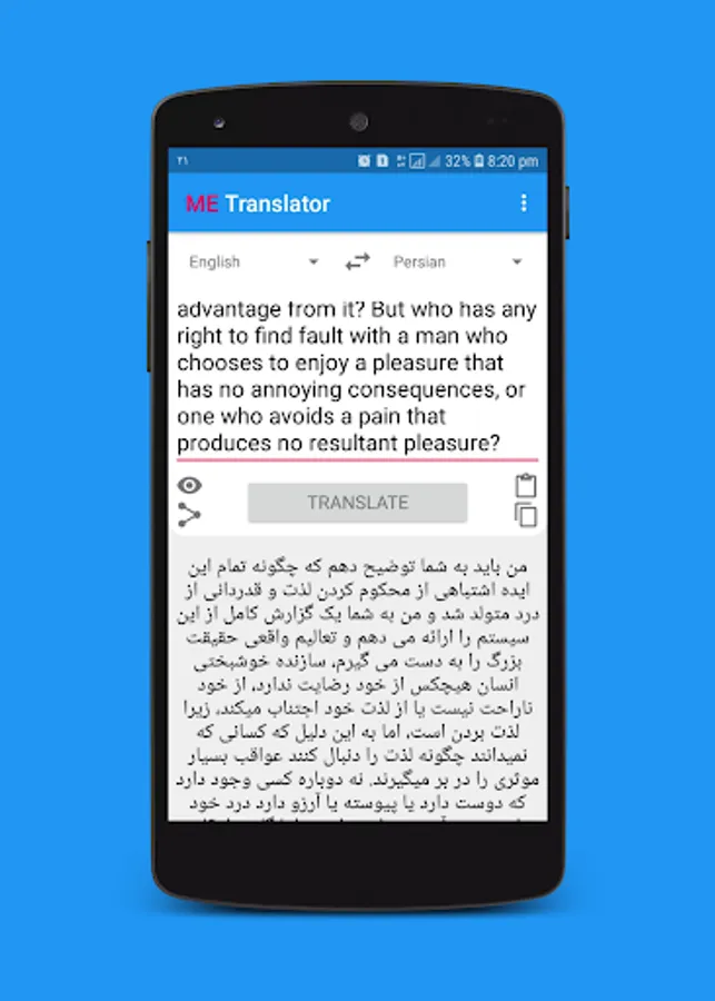 -Ability to share the translated text.