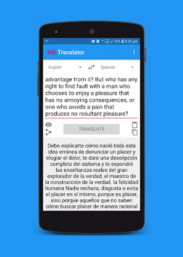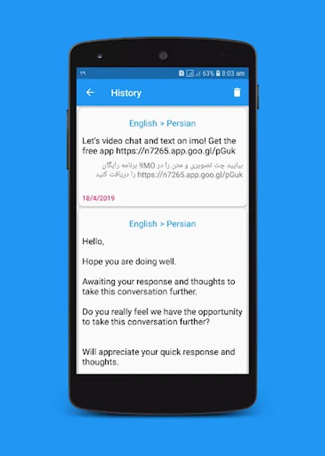 This application is perfect to translate texts fast in your phone or tablet. With this online translator you won't have communication problems.