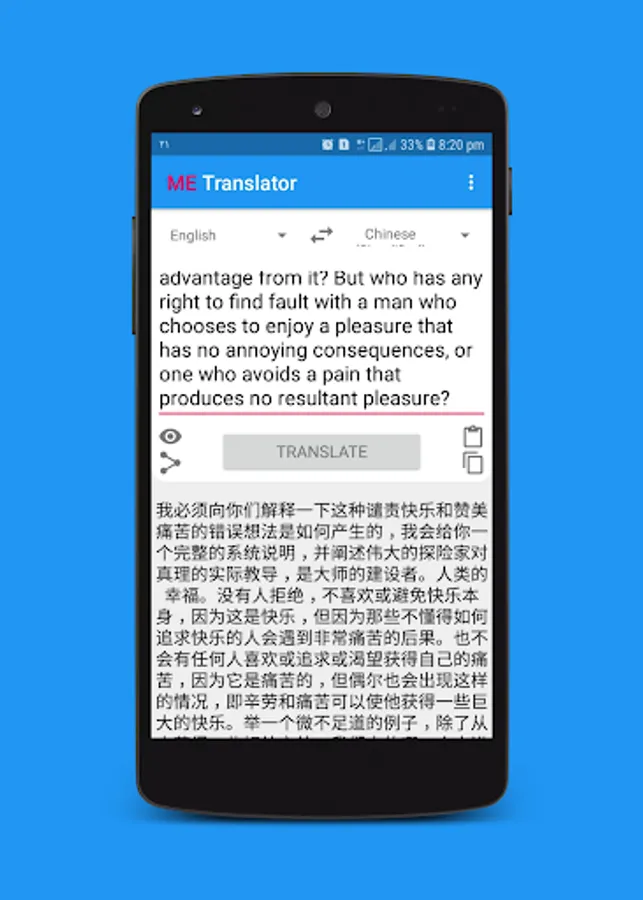 -Ability to copy the translated text.