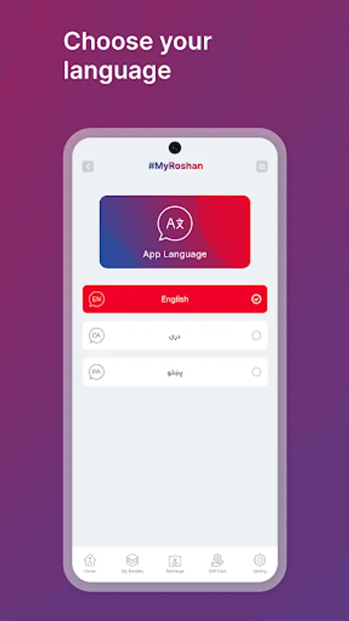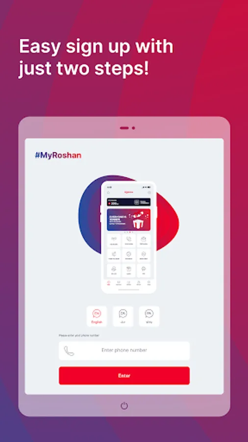 همدا اوس د روشن اپلیکیشن ډانلوډ کړئ او د کریډټ زیاتولو، د خپلې خوښې انټرنټي او اړیکې بنډلونو فعالولو او همدارنګه د بنډلونو د مصرف نظارت کولو ځانګړنو څخه خوند واخلئ.