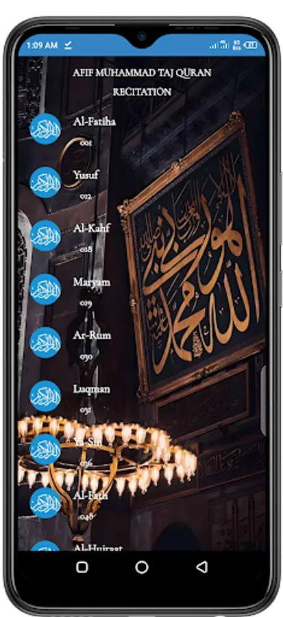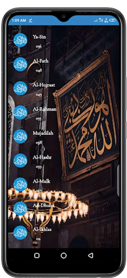 with this application you can listen to surah like: surah ibrahim, surah alfatiha, surah yusuf, surah yunus, surah al kafi, surah maryam, surah ar rahman etc.