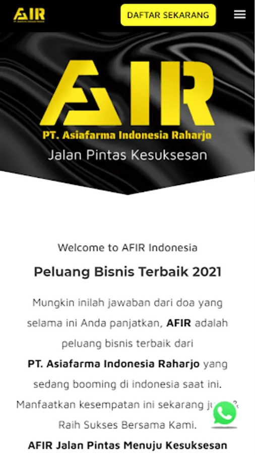 PT. Asiafarma Indonesia Raharjo (AFIR) was founded in 2020. It is a large modernization company that combines research and development, marketing and service into one unit, by providing Beauty & Healthcare products.