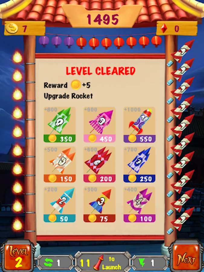 Rocket Frenzy is an attractive puzzle game. Twist and turn the pipes link to rockets and shoot them across the sky that full of shimmering colors of New Year. There are many kinds of colorful rockets with many different levels. The higher level of Rocket you gain, the more points you achieve. Try to upgrade the rocket to the highest level and also try to arrange the Rocket map to shoot lots of rockets at one time. It would be excellent!