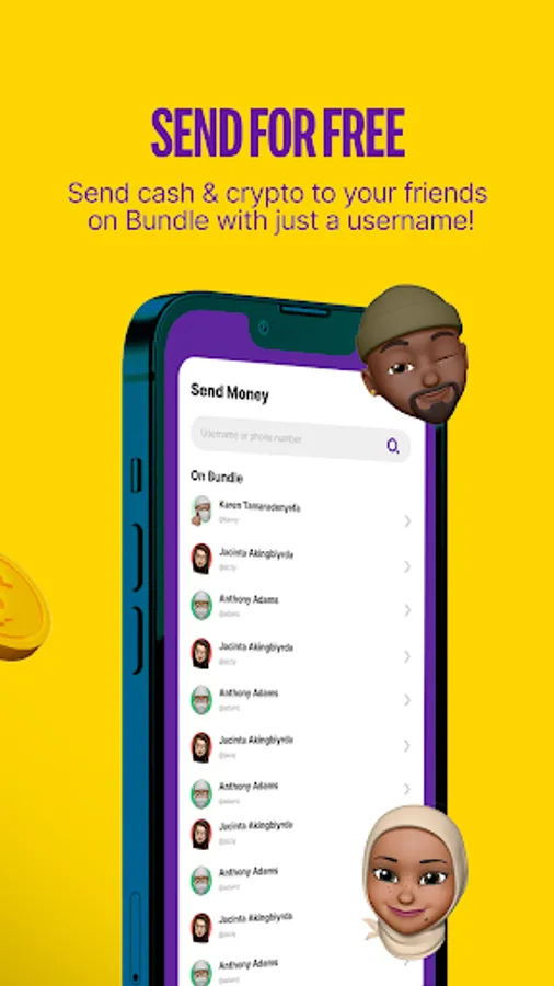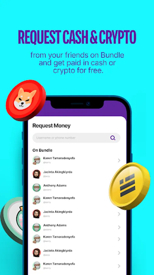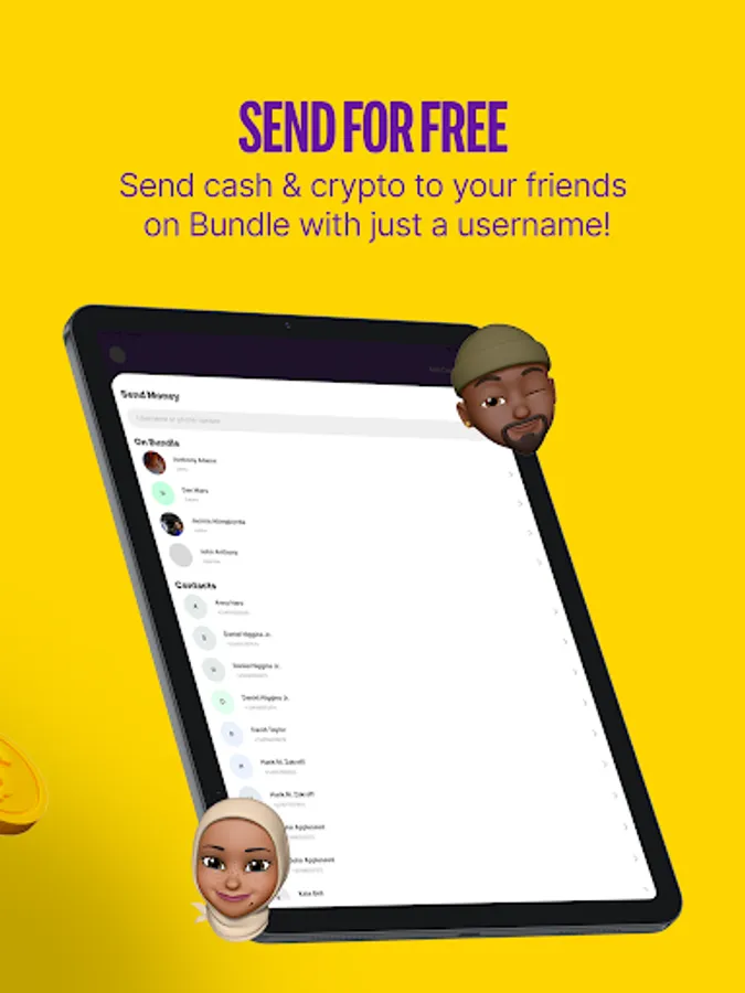 Send and transfer cash and crypto to your contacts on Bundle. Link your phone's contacts to Bundle to see who you know on Bundle π. Send to your friends using just their usernames. All absolutely free; best crypto app.