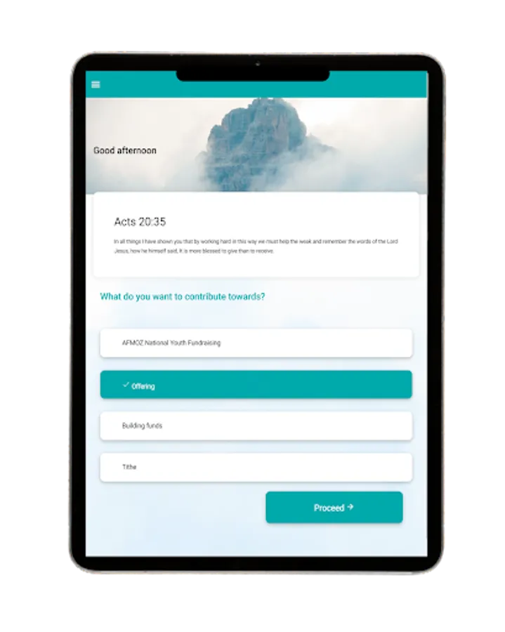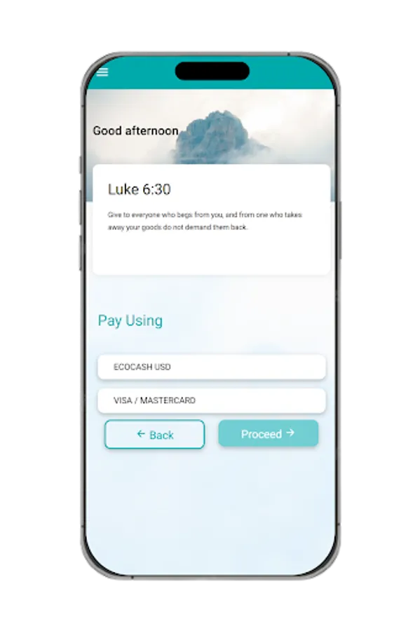 An easy-to-use program that allows congregation members to donate online utilizing Zimbabwean payment methods (Ecocash & One Money), as well as various international payment methods such as Visa/Mastercard.