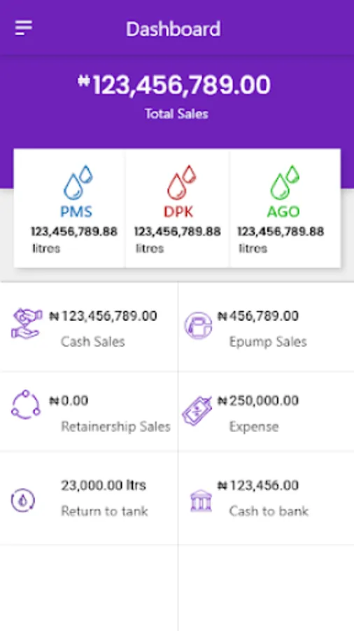 Epump Station Companion App gives you realtime view and control of your filling station from the comfort of your phone. Get sales report, tank inventory, bank deposits and business records on your phone. You can set prices for your pumps, lock or release pumps in realtime. The app works with Epump Prime and Epump Go