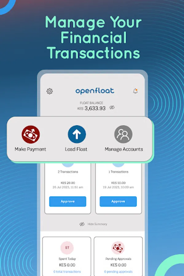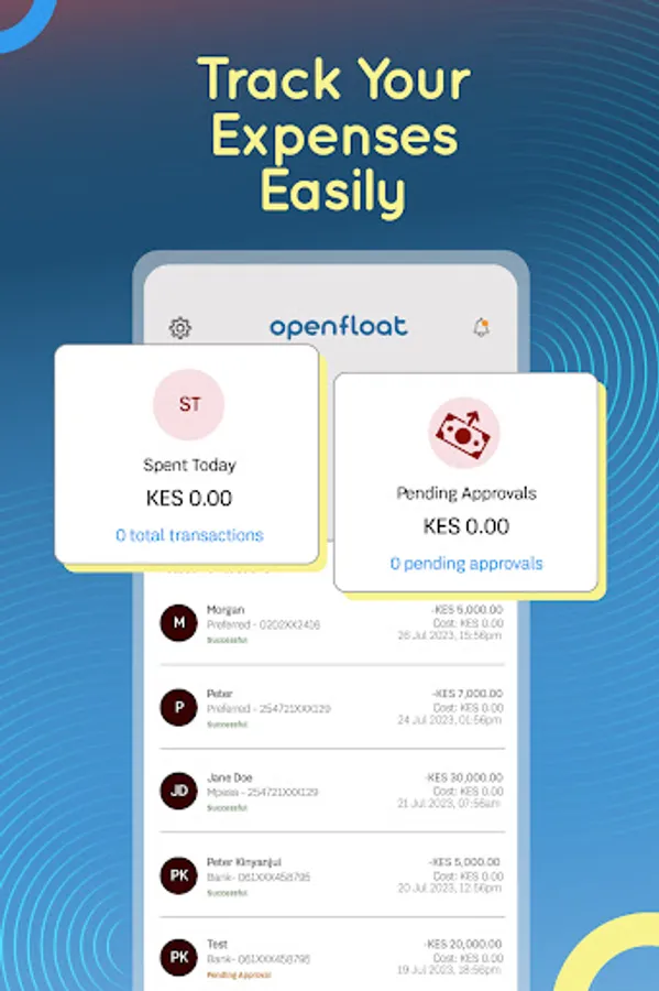 OpenFloat is a business solution that digitises Petty Cash, Payroll and Corporate Bills Payments. You can Disburse Funds, Pay Bills, Buy Airtime in Bulk, Book Flights & Hotels — all in one place.