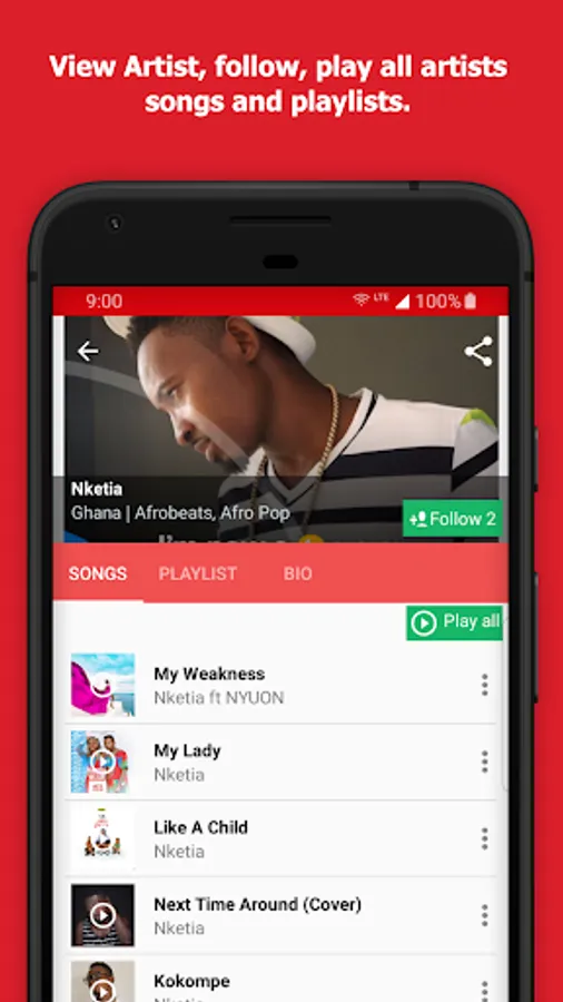 With AfroCharts, you can listen African music for free from your favorite artists.