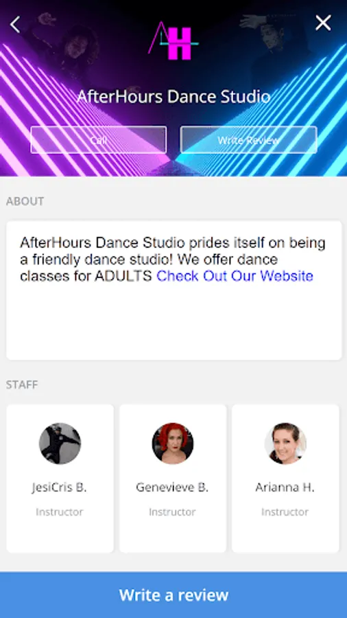 Download this app and access your personalized member portal to sign up for classes, manage your membership, and stay in the know about the events of AfterHours Dance Studio