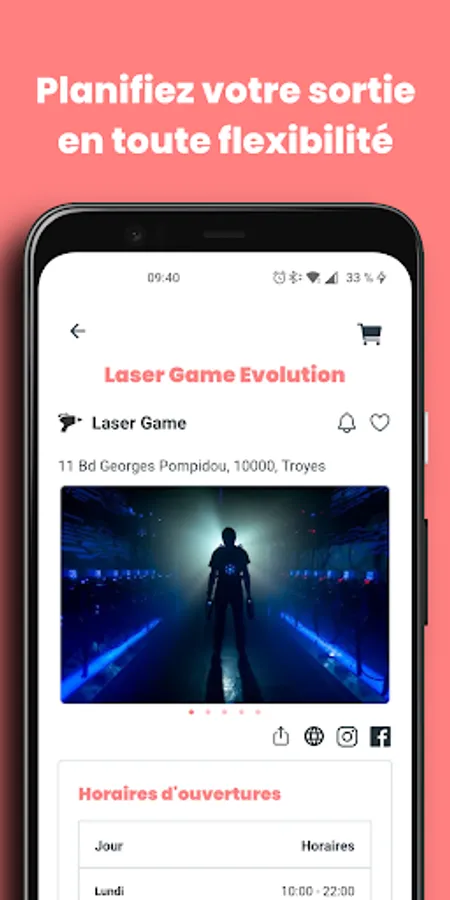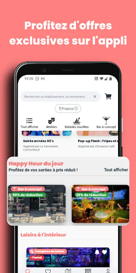 Bowling, Karting, Nightclubs, Restaurants, Museums, Festivals...: All your city's outings in a single app! Book for any partner establishment in just a few clicks.