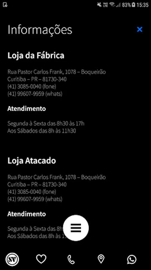Get direct access to WhatsApp, your phone, location, social networks, store addresses, and the site.