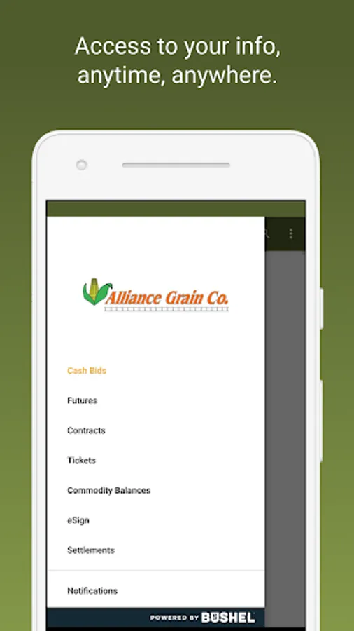 The Alliance Grain Co. app is free, secure, and developed by the industry-leading Bushel platform.