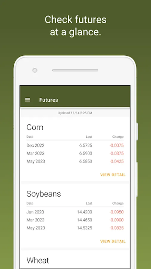 Futures: See Grains, Feed, Livestock, and Ethanol futures listed in order of your preference