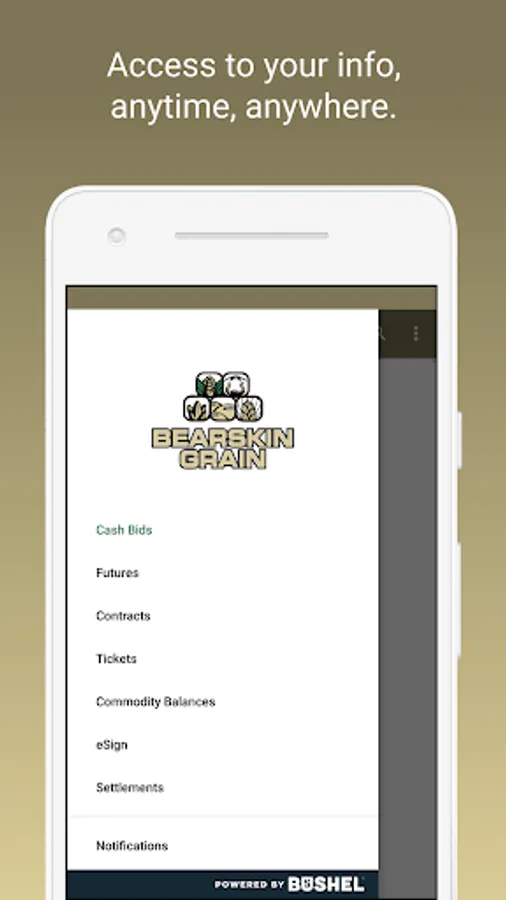 The Bearskin Grain app is free, secure, and developed by the industry-leading Bushel platform.
