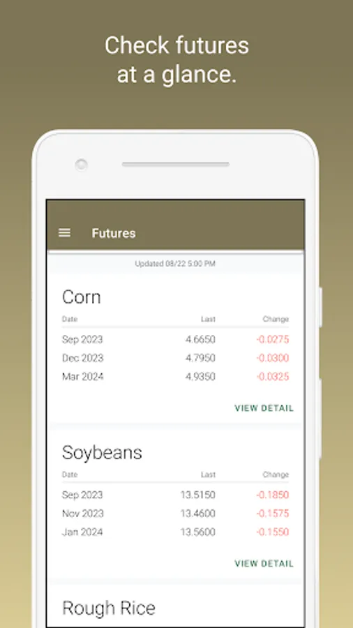 Futures: See Grains, Feed, Livestock, and Ethanol futures listed in order of your preference