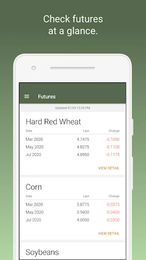 Futures: See Grains, Feed, Livestock, and Ethanol futures listed in order of your preference