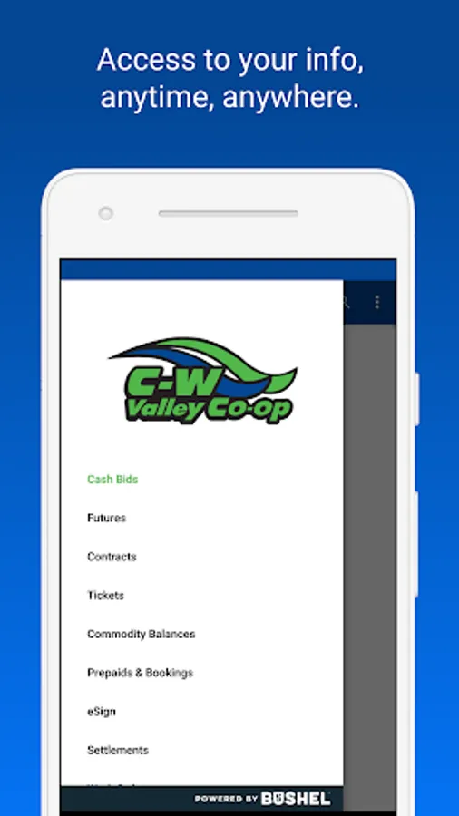 The C-W Valley Co-op app is an essential mobile solution that connects your operation to your grain facility, providing real-time, actionable information to help you manage and grow your business.