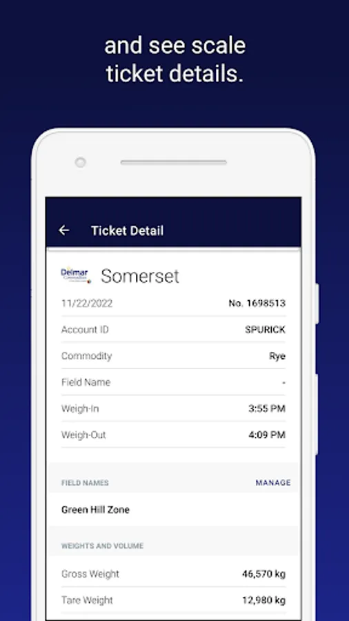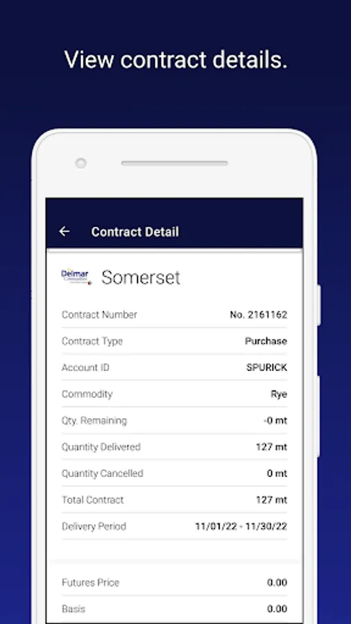 The Delmar Commodities app is an essential mobile solution that connects your operation to your grain facility, providing real-time, actionable information to help you manage and grow your business.