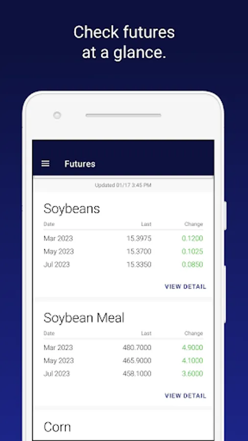With a robust toolset that's constantly evolving to meet the demands of the modern grower, your Delmar Commodities app is built with powerful features to help you save time and maximize profits, including: