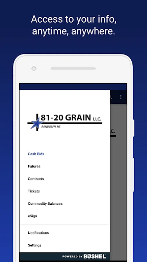 The 81-20 Grain app is free, secure, and developed by the industry-leading Bushel platform.