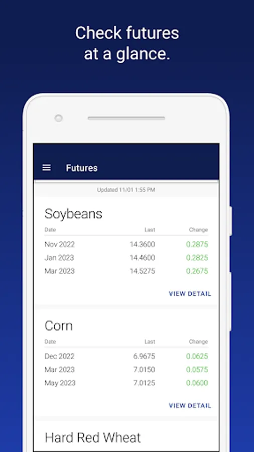 Futures: See Grains, Feed, Livestock, and Ethanol futures listed in order of your preference