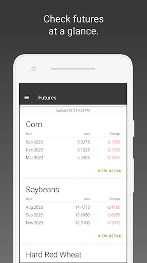 Futures: See Grains, Feed, Livestock, and Ethanol futures listed in order of your preference