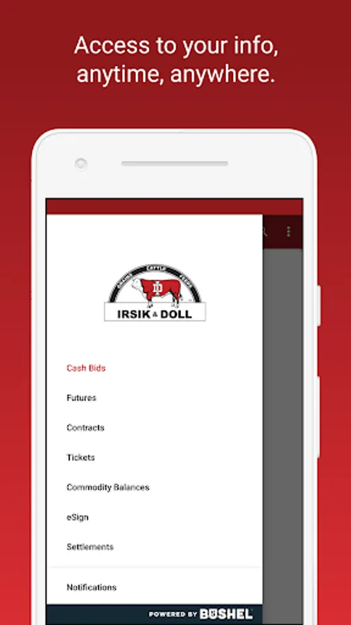 The Irsik & Doll app is free, secure, and developed by the industry-leading Bushel platform.