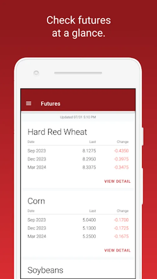 Futures: See Grains, Feed, Livestock, and Ethanol futures listed in order of your preference