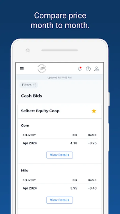 With a robust toolset that's constantly evolving to meet the demands of the modern grower, your Seibert Equity Cooperative app is built with powerful features to help you save time and maximize profits, including: