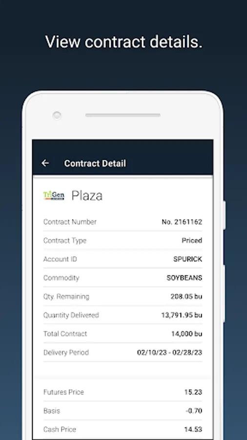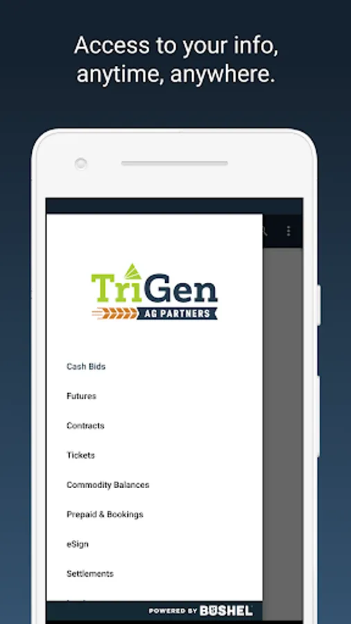 The TriGen Ag Partners app is an essential mobile solution that connects your operation to your grain facility, providing real-time, actionable information to help you manage and grow your business.