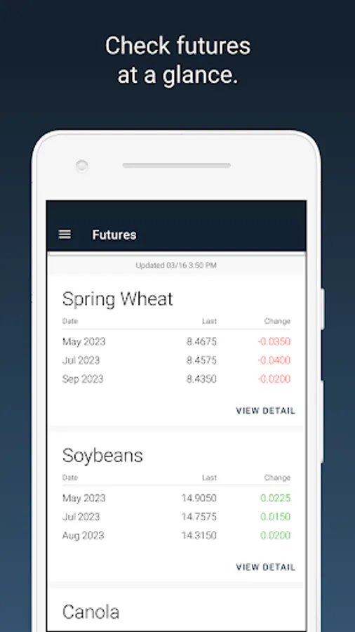 Futures: See Grains, Feed, Livestock, and Ethanol futures listed in order of your preference