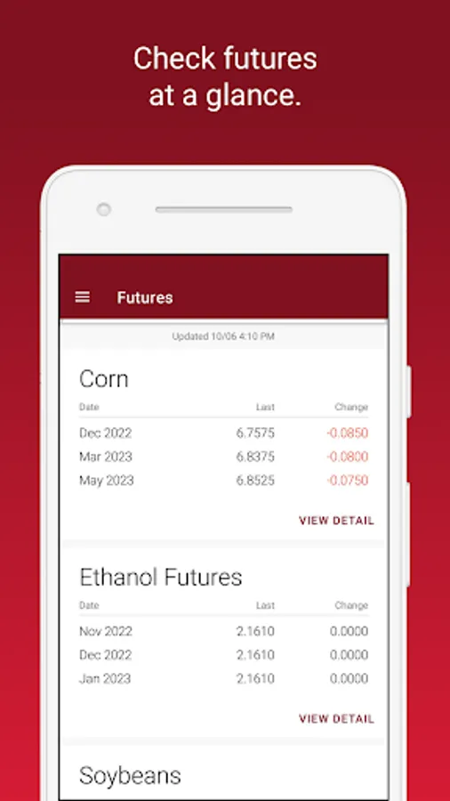 Futures: See Grains, Feed, Livestock, and Ethanol futures listed in order of your preference