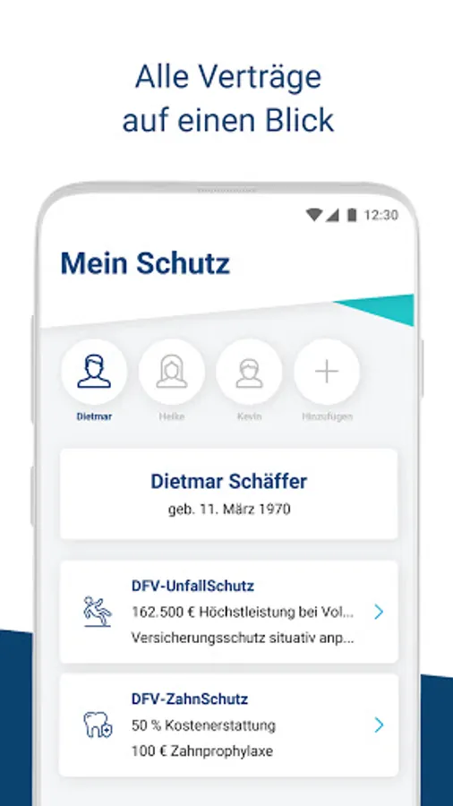 In our app, you have your insurance policies and all service functions related to your protection at a glance. Mountains of paper and long waiting times are a thing of the past! Do you want to report an insured event? Simply select the contract, take a photo of the invoice and upload it. In the service center you will find all the answers to the most important questions and direct contact with customer service. You can also look forward to exciting articles from our magazine and other test winner insurance in the Discover section.