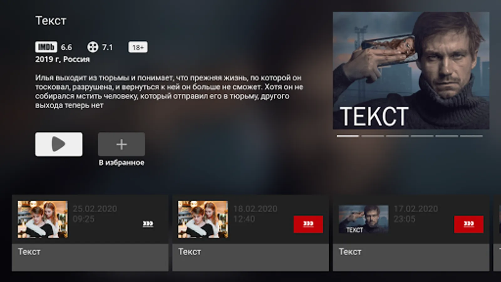 Stunning clarity of the picture on TVs and consoles. Unlike other TV services, we transfer the uncompressed picture to your TV directly from TV studios! Quality will please the eye. To do this, we recommend connecting the TV or set-top box with a cable. If this is not possible, viewing in normal mode with a lower bit rate is available.