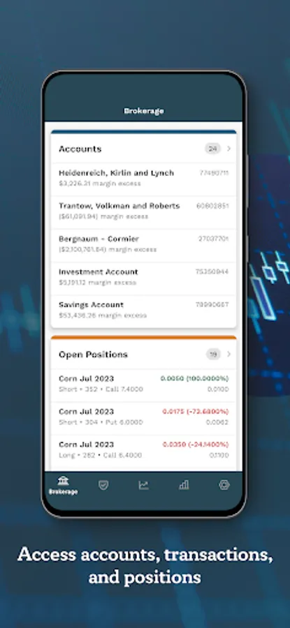 - Brokerage – Access brokerage accounts, transactions, and open positions. Never take a guess at what your place in the market is.